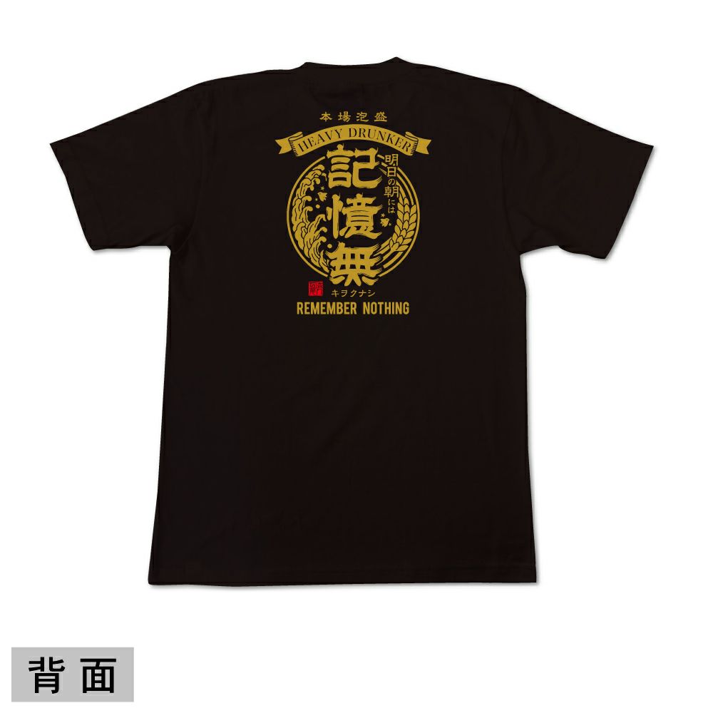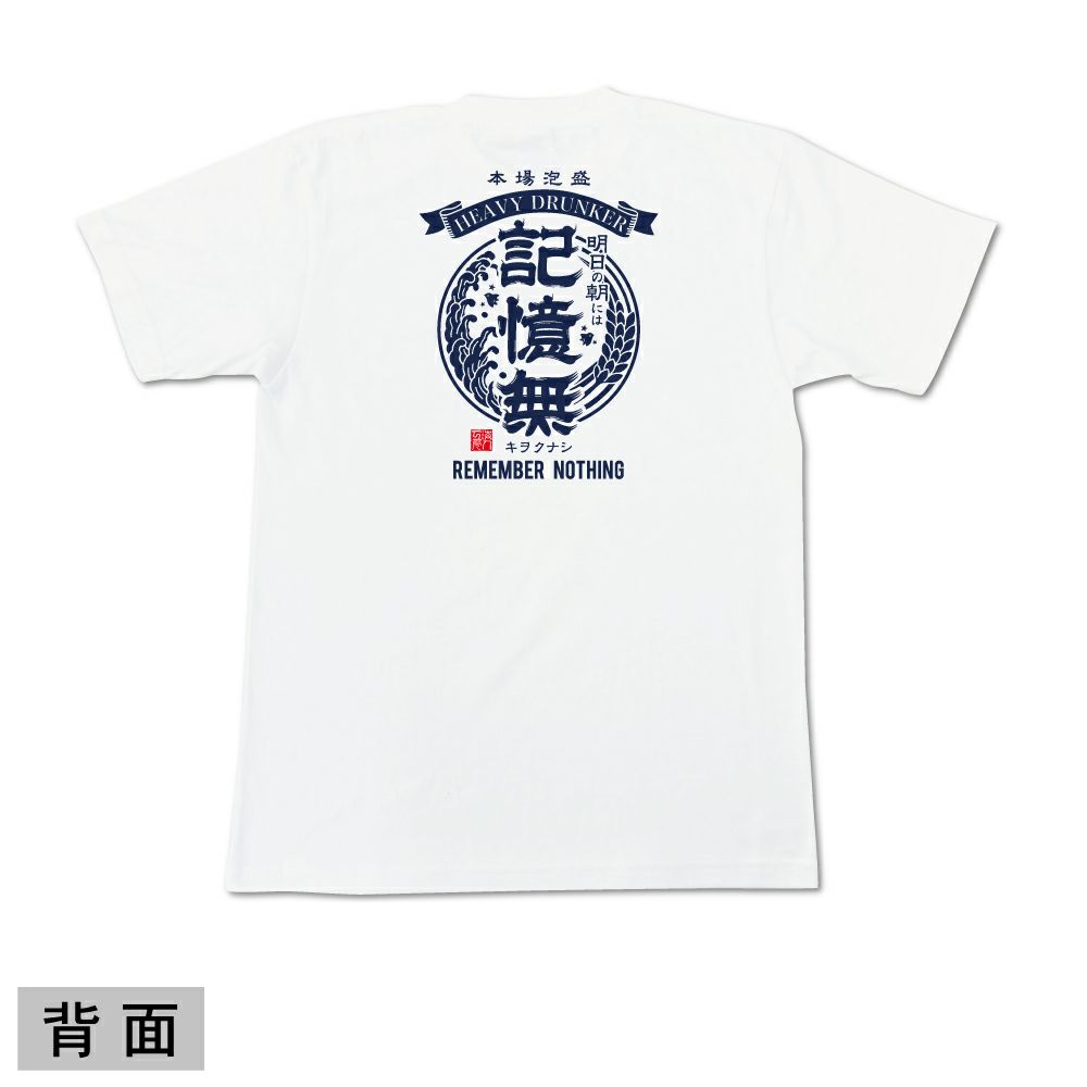 島酒(泡盛)をイメージした「記憶無」Tシャツは、シンプルながらインパクト抜群で、お酒好きの方や盛り上げ役に大人気の1枚です。