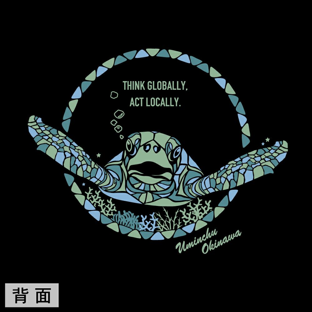 波や砂に削られて生まれるシーグラスの独特な風合いをモチーフに、優雅に泳ぐウミガメを描いたTシャツ。沖縄の美しい海を守りたいという思いと、「身近にできることから始めよう」というメッセージを込めています。環境保護や自然への感謝の気持ちを日常でさりげなく表現できる一枚。リゾートや海辺の散歩はもちろん、街中でも爽やかに着こなせます。自分用はもちろん、海が好きな方への贈り物にもおすすめです。