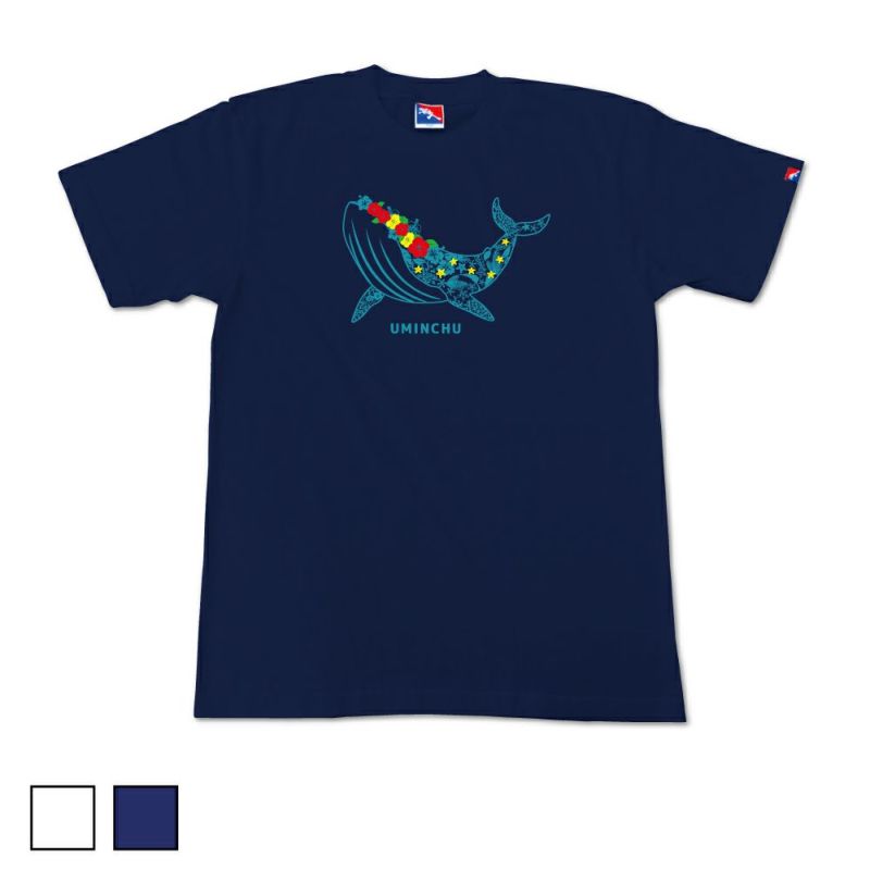 散りばめられた南国イメージのクジラのデザインTシャツ。